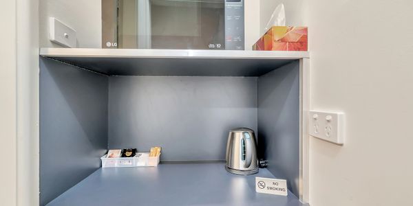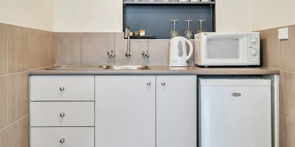 Kitchenette includes Tea Coffee Milk (UHT) with a kettle