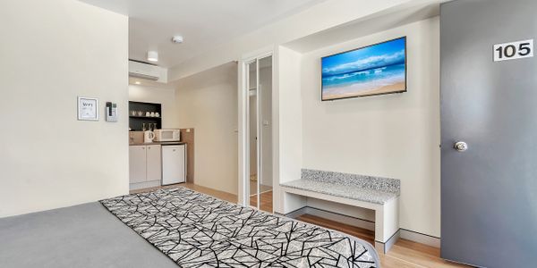 The Standard King Room has a bench for luggage / seating and a dining setting for 2. It also have a wardrobe with an iron / ironing board.